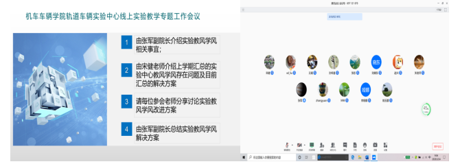 最后,张军副院长指出,疫情暂停了实践国产偷拍,但是不能暂停实践国产偷拍的建设,教风学风不仅是学院建设的重要内容,也是轨道车辆实验中心建设的重要部分,同时也是反映实验国产偷拍质量的重要标志。教师们针对实验国产偷拍过程中发现的共性问题及可行性建议,中心将认真梳理解决并汇总意见稿提交学院,对已达成共识的部分意见和建议积极推行实施,将实验国产偷拍中教风学风整改扎实推进落实。